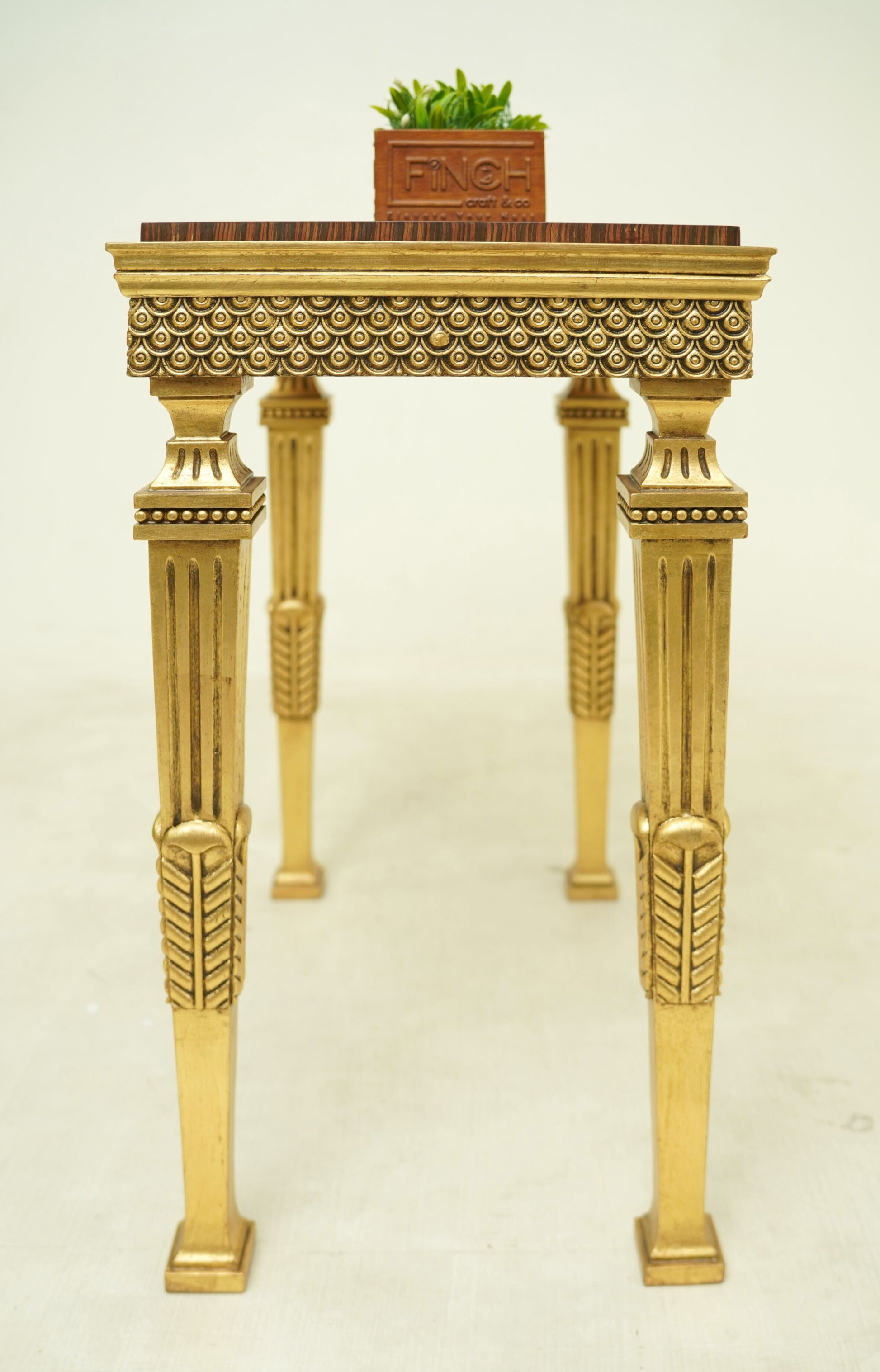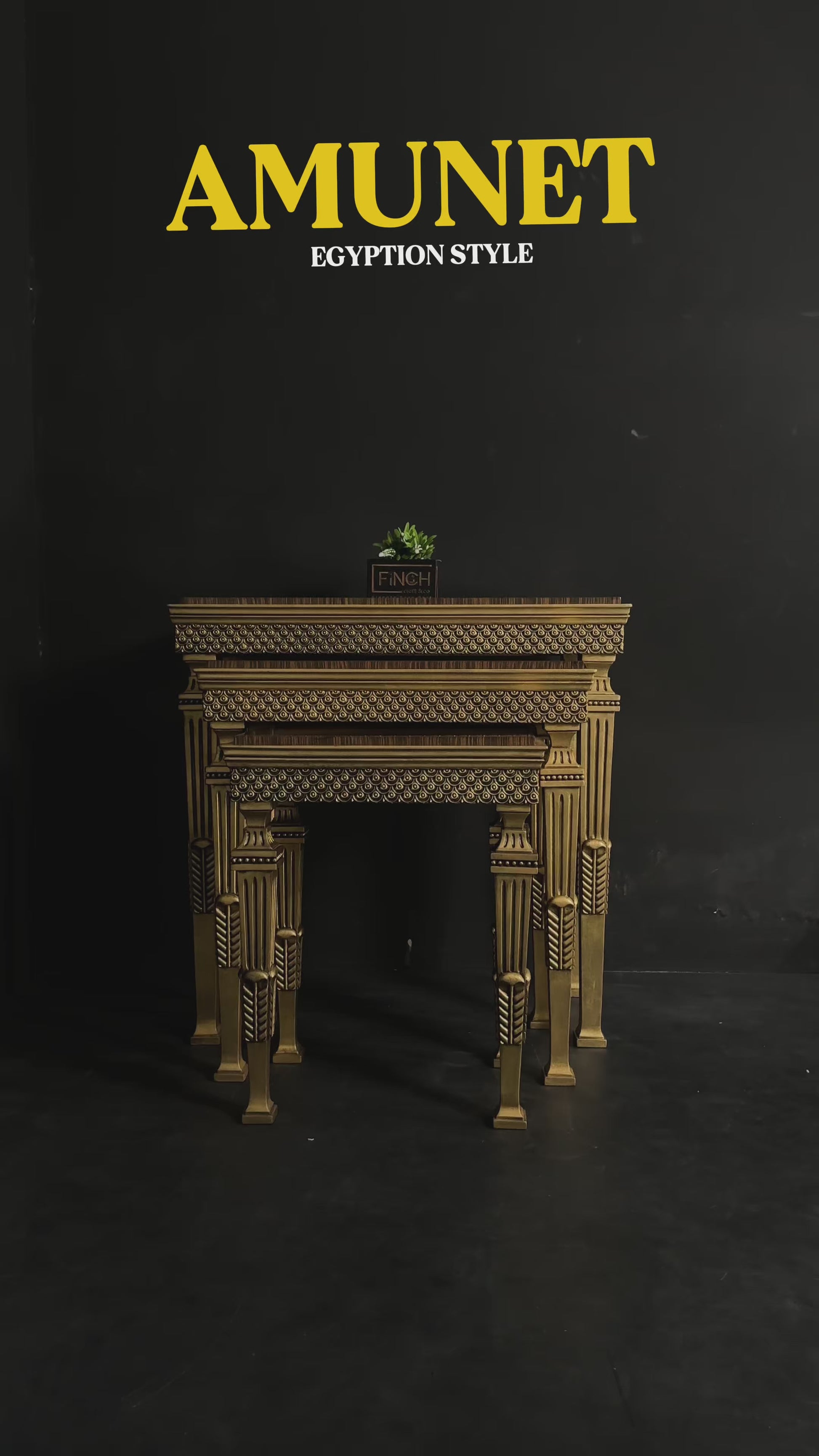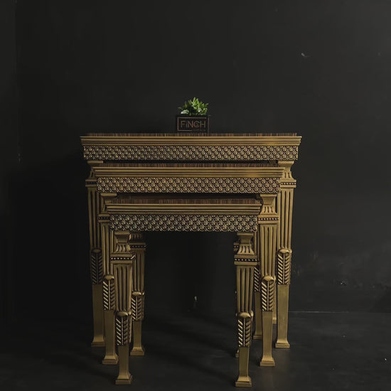 Antique-style tables with gold leafing, ideal for décor placement in living rooms and large lobby areas.