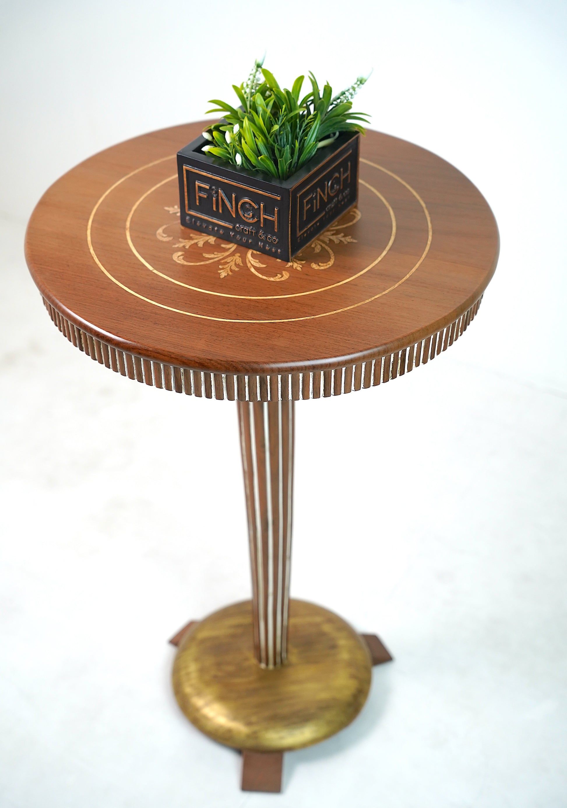 Decorative Base Plate – Stable plate-style base with green-gold brushing adds depth and a sophisticated design contrast.