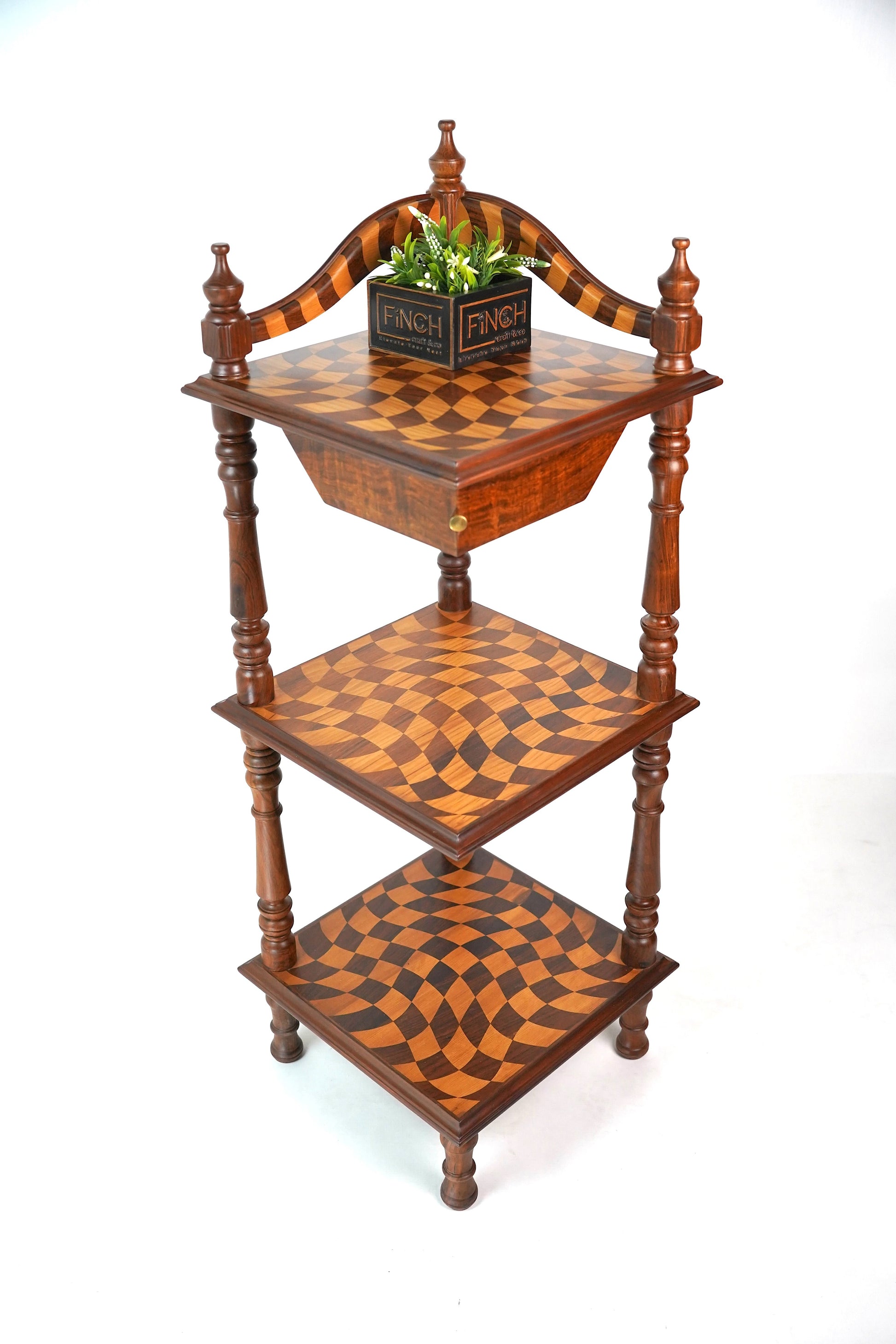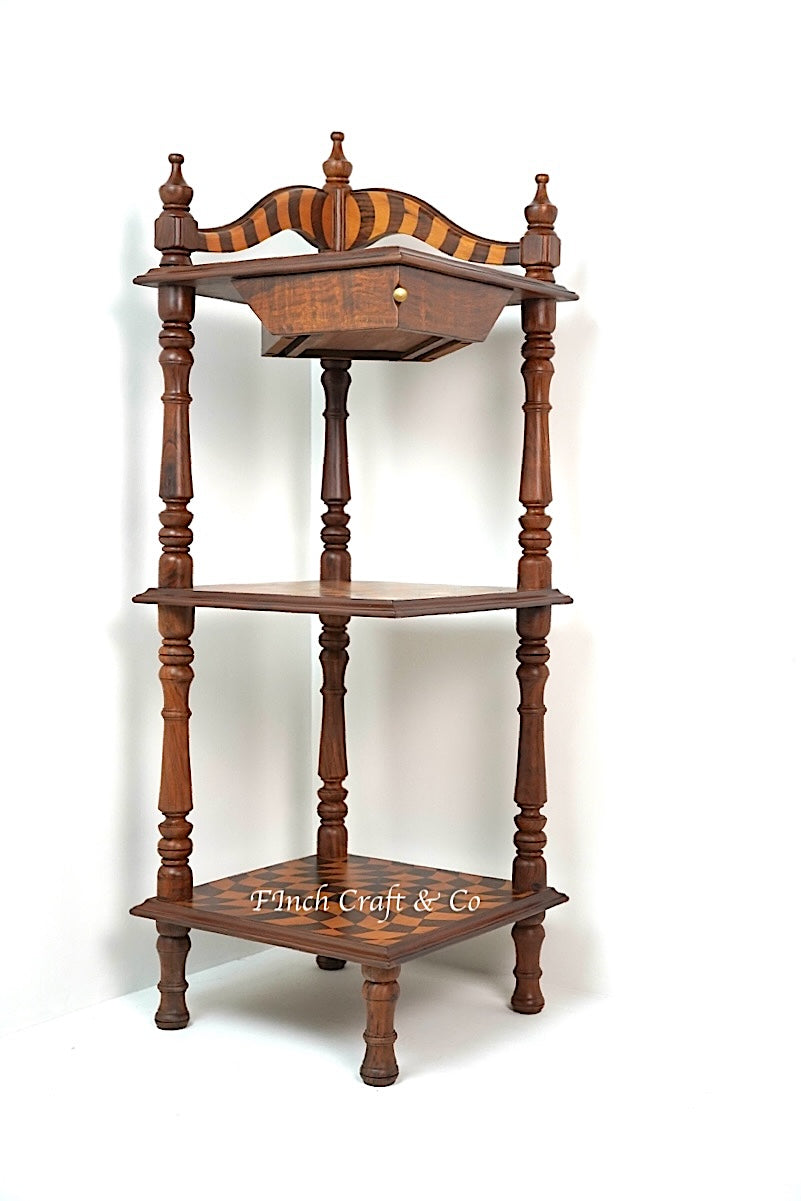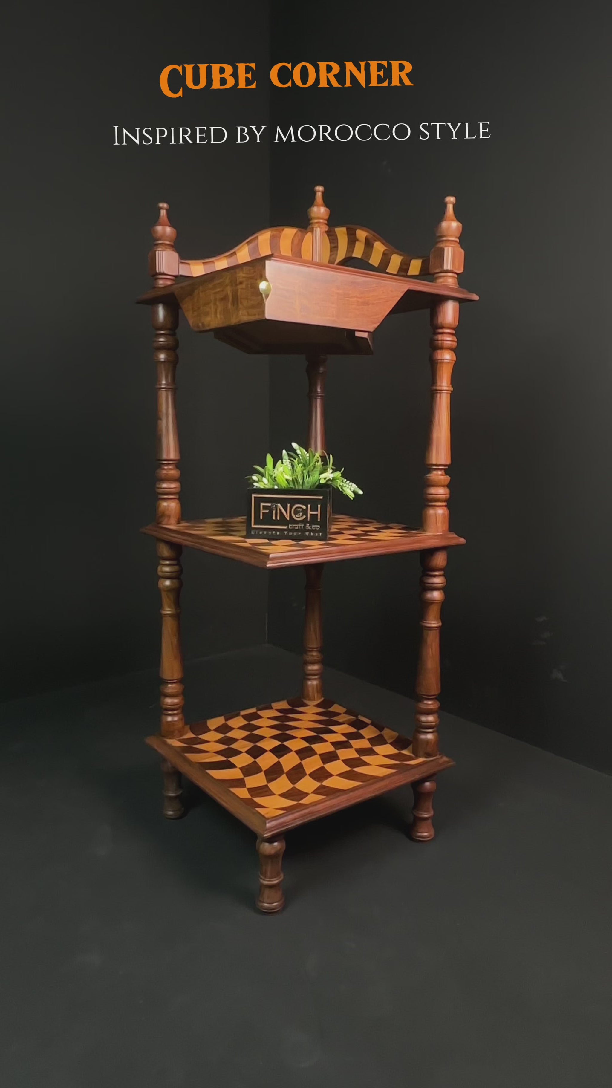 Upgrade your space with this multi-functional rosewood and deodar corner shelf, designed to combine modern style with Moroccan elegance. Whether enhancing your home office, living room, or reading nook, this space-saving wooden corner rack offers both decorative beauty and practical storage—a true statement of Finch Craft & Co’s craftsmanship.