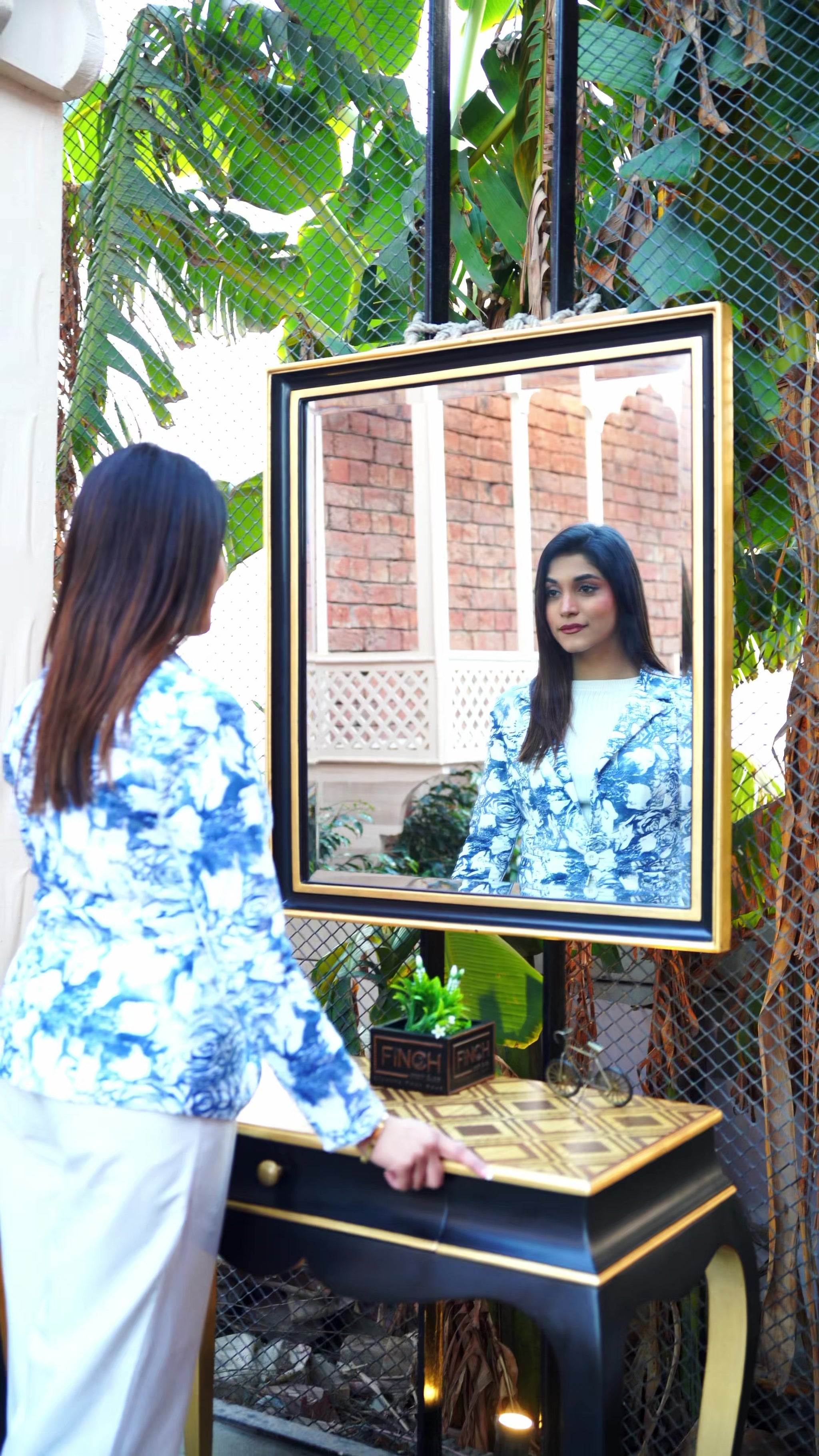 Perfect as a makeup vanity, entryway table, hallway console, or lobby accent.