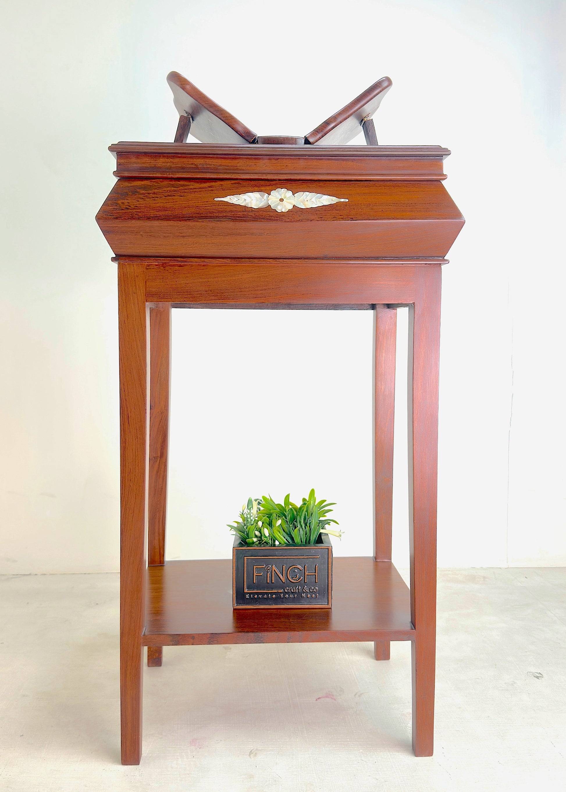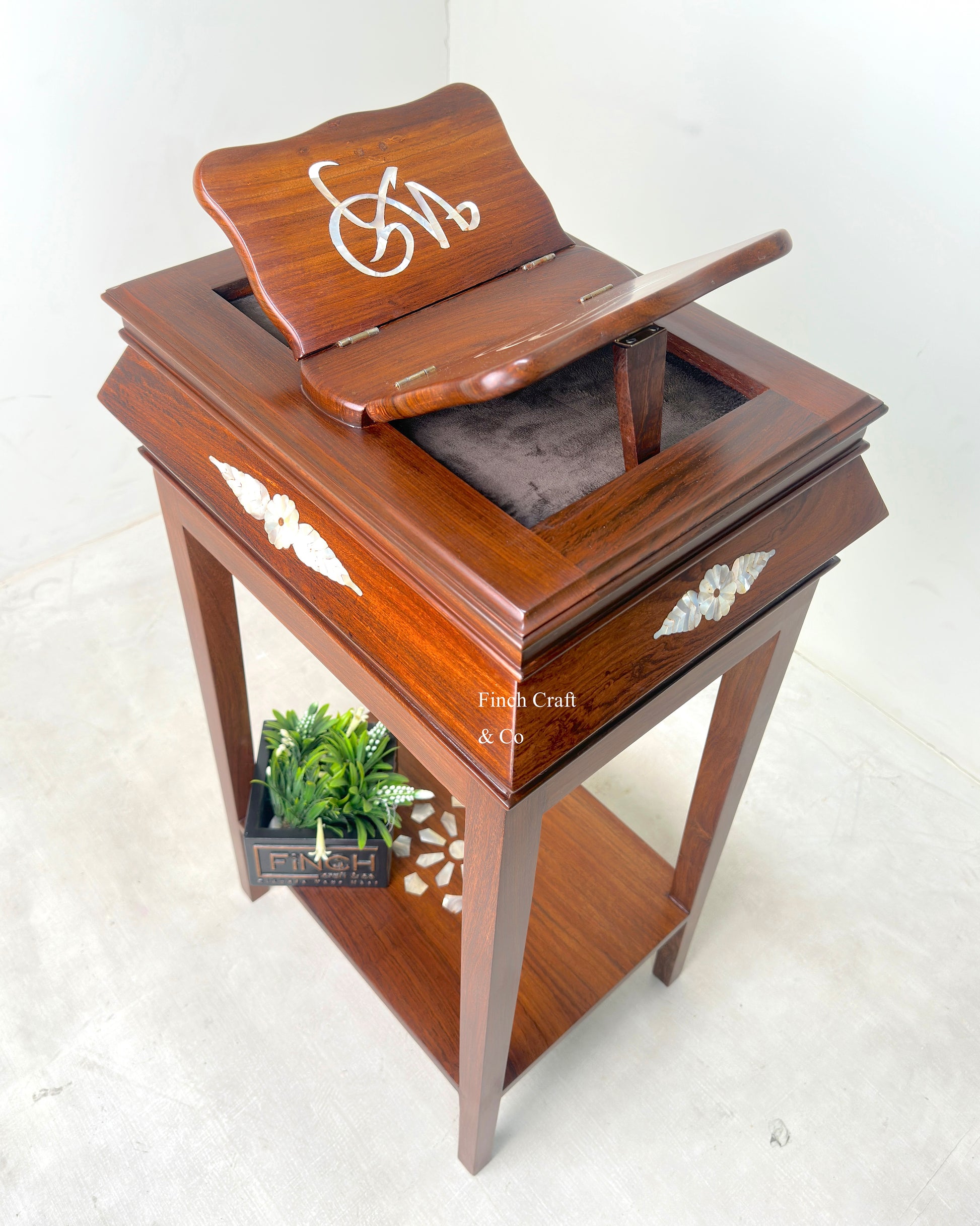 Handle with care to preserve the mother of pearl work and natural matte finish.