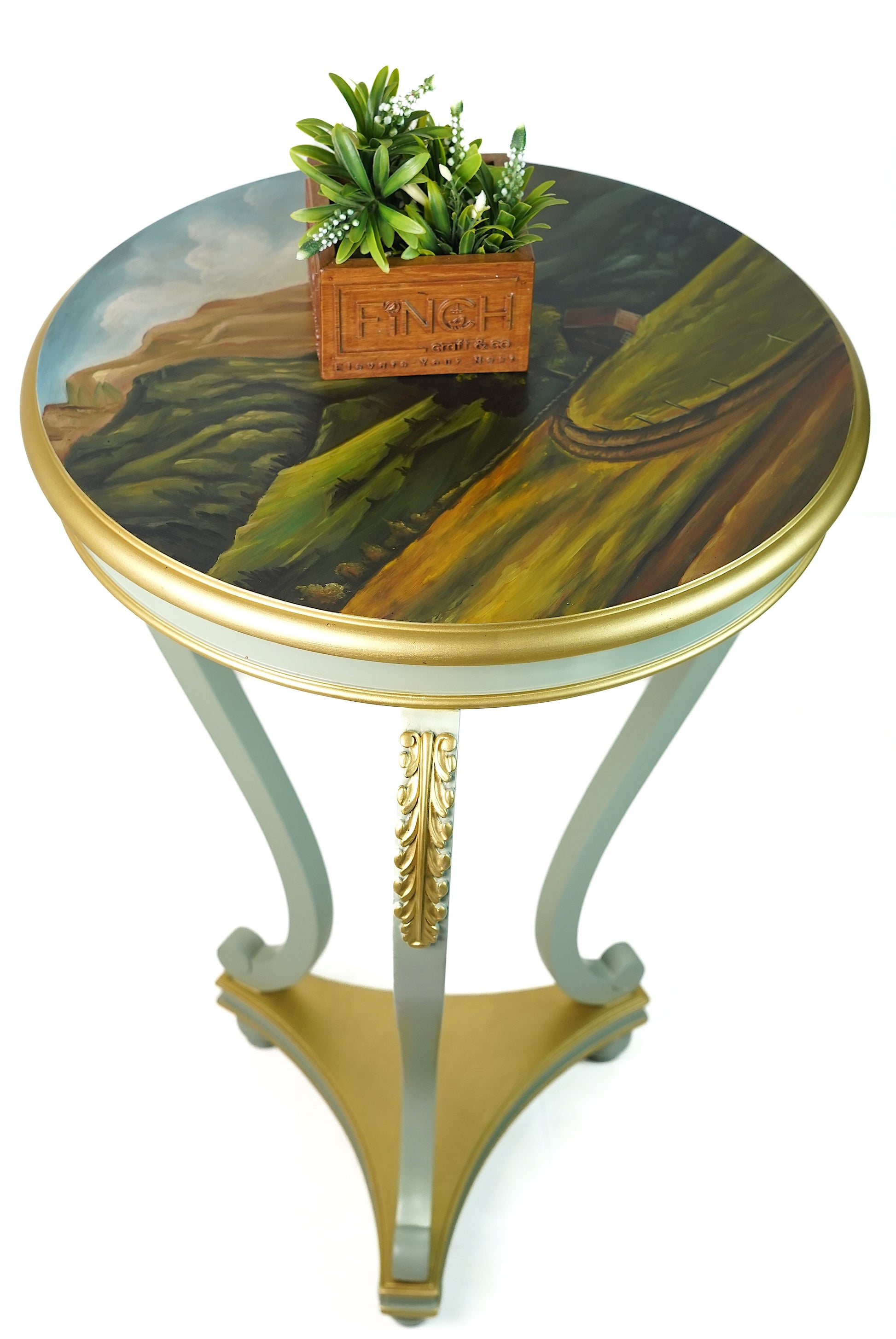 Hand-Painted Artistic Top – Features a refined scenic artwork that adds a unique, luxurious, and cultured decorative appeal.