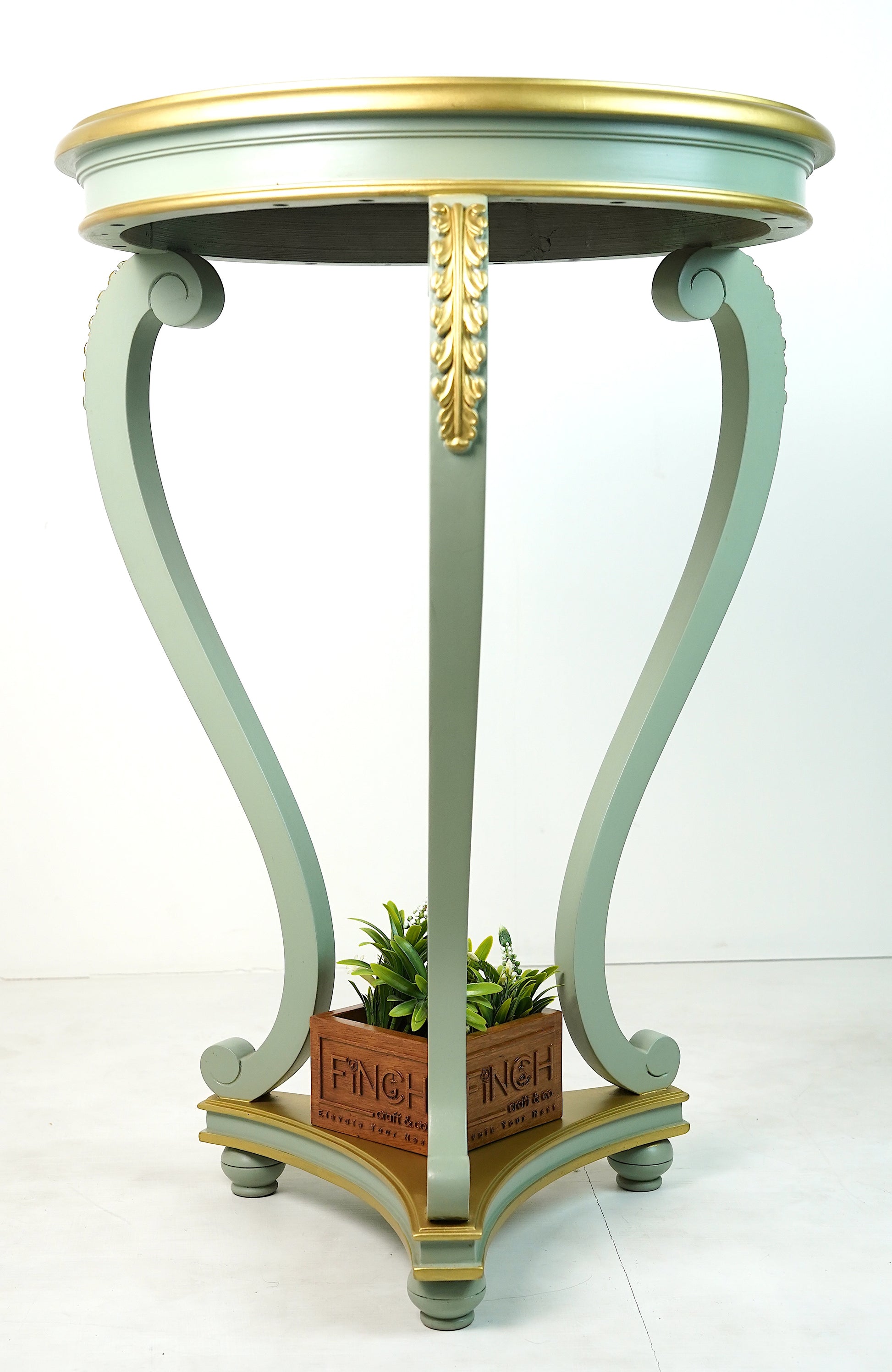 Elegant Three-Leg Base – Stylish three-leg structure with green-gold detailing, offering stability and classic sophistication.