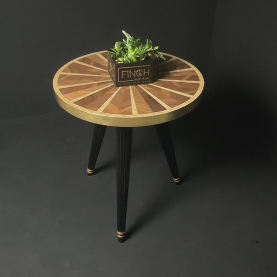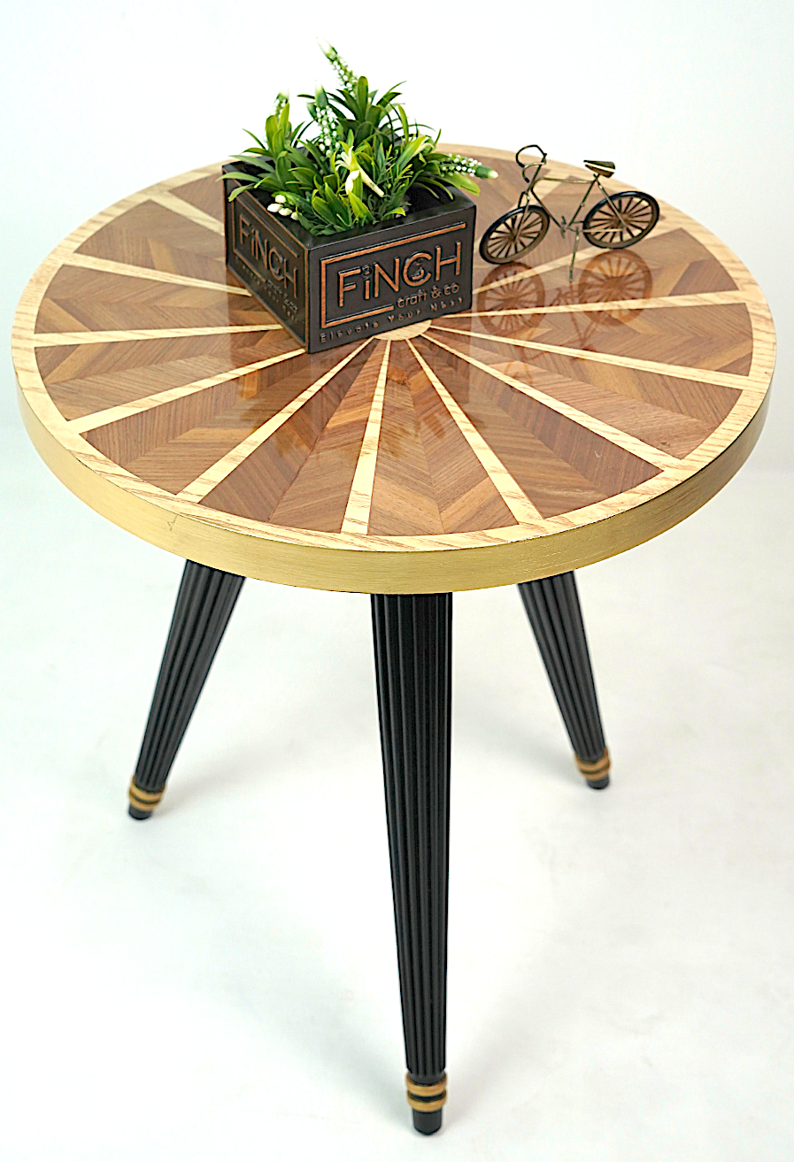 Modern round foldable table featuring sunray veneer top, ideal for homes, offices, and lounges.