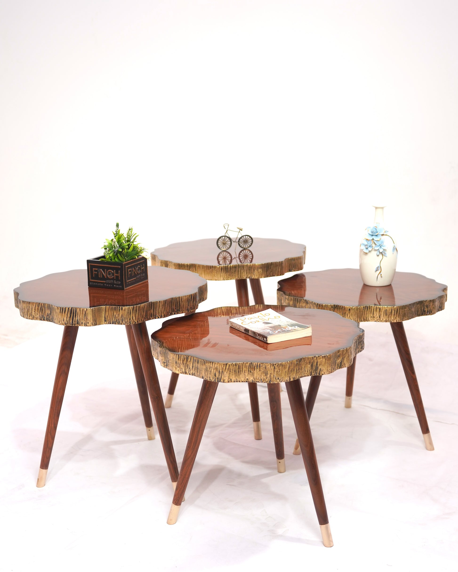 Modular four-table coffee set for flexible layouts